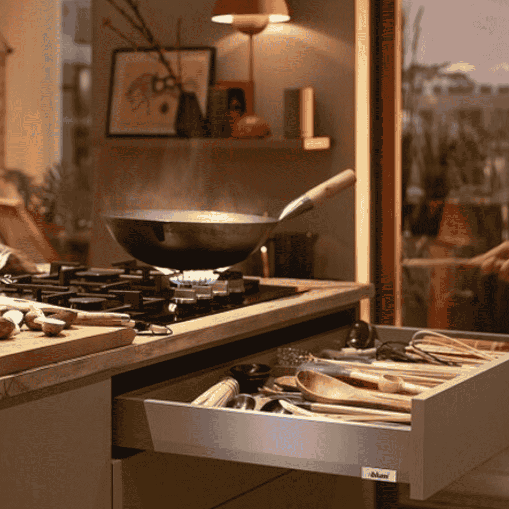 Passgenaue Besteckeinsätze für das Zargensystem Blum TANDEMBOX – hochwertig verarbeitet, variabel unterteilbar und ideal für eine klare, funktionale Schubladenorganisation.
